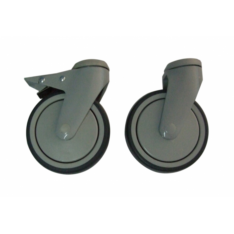 Haken, höhenverstellbar. Ø 125mm Räder, zwei mit Bremsen. Version strahlendurchlässige