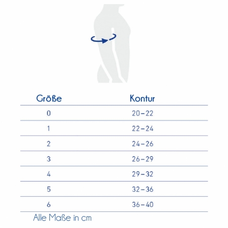 Die Größe bezieht sich auf den Armumfang in Zentimetern.