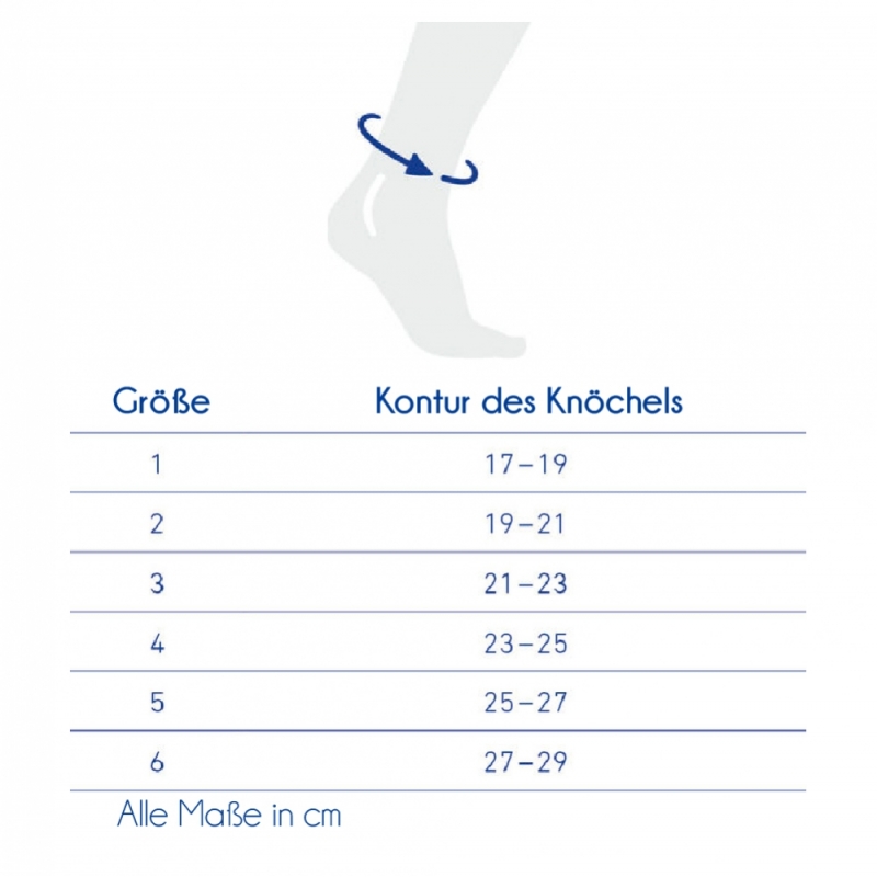 Die Größe bezieht sich auf den Knöchelumfang in Zentimetern.