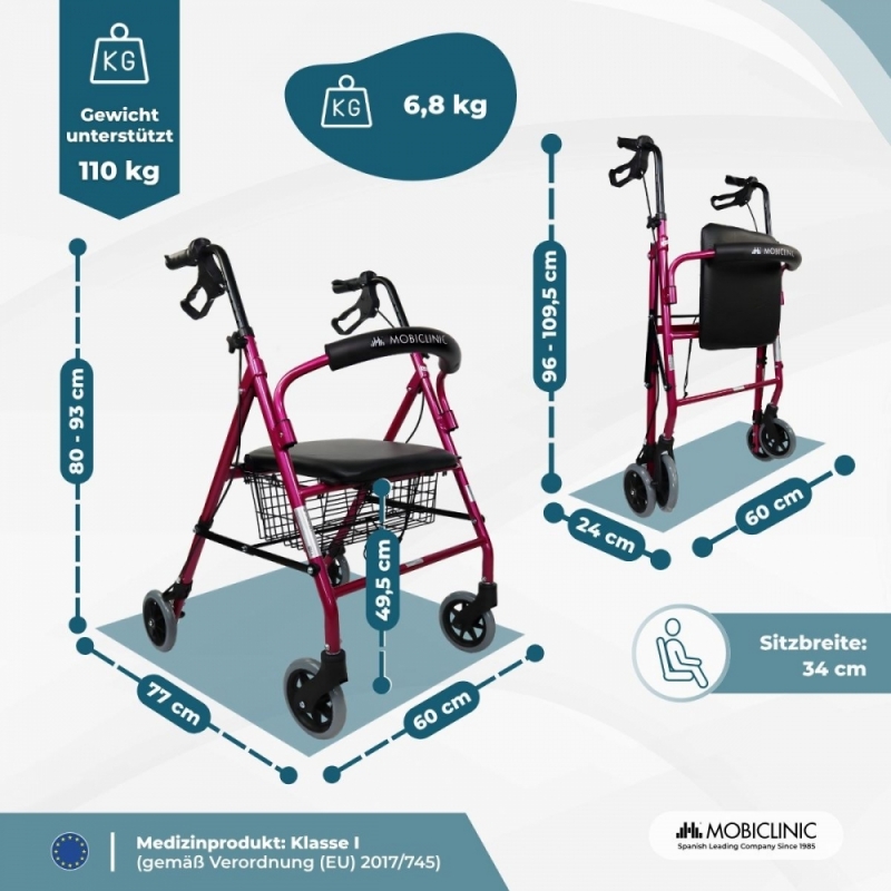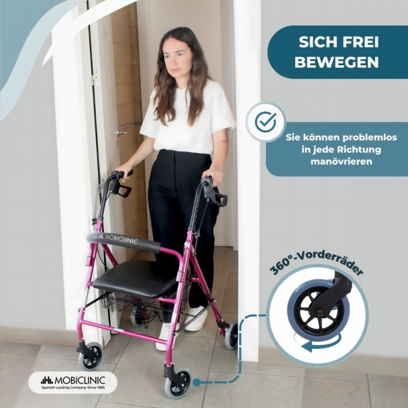 Es handelt sich um einen Gehwagen für Erwachsene mit innovativem und leichtem Design, der hervorragende Mobilität und Stabilität beim Gehen bietet. Es besteht aus Aluminium und bietet großen Widerstand und Beweglichkeit bei Bewegungen. Seine vier stabilen Räder sind so konzipiert, dass er sowohl im Innen- als auch im Außenbereich problemlos kleine Straßenhindernisse überwinden kann, ohne dass die Gefahr einer Panne besteht.