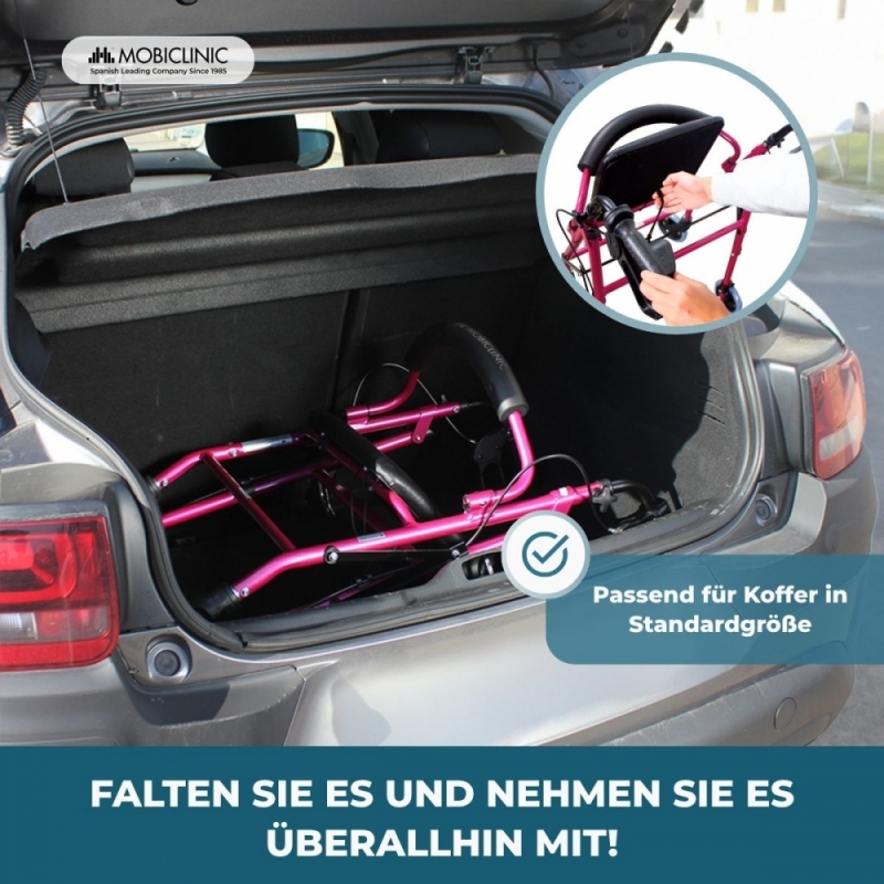 TÜREN UND KOFFERRAUM : Dieser Rollator hat eine Gesamtbreite von 60 cm und passt somit durch Türen mit einer Standardbreite von 62,5 cm. Da dieser zusammengeklappte Gehhilfe außerdem nur 24,5 cm misst, ist er recht einfach zu transportieren. Achten Sie auf die Maße Ihrer Türen und Ihres Fahrzeugs, um sicherzustellen, dass es zu Ihnen passt.