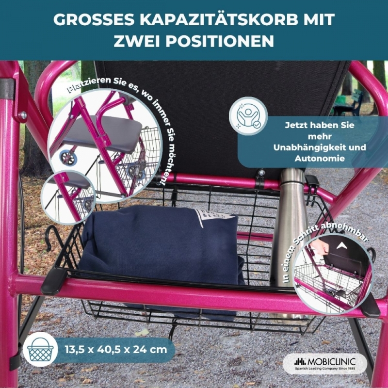 NÜTZLICH : Dieser Rollator mit Sitz verfügt über einen praktischen Korb darunter, um Aufgaben wie Einkaufen oder den Transport von Gegenständen zu erleichtern.