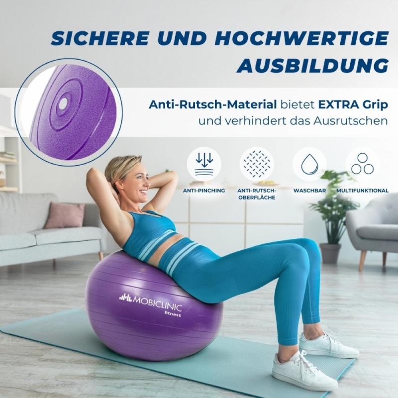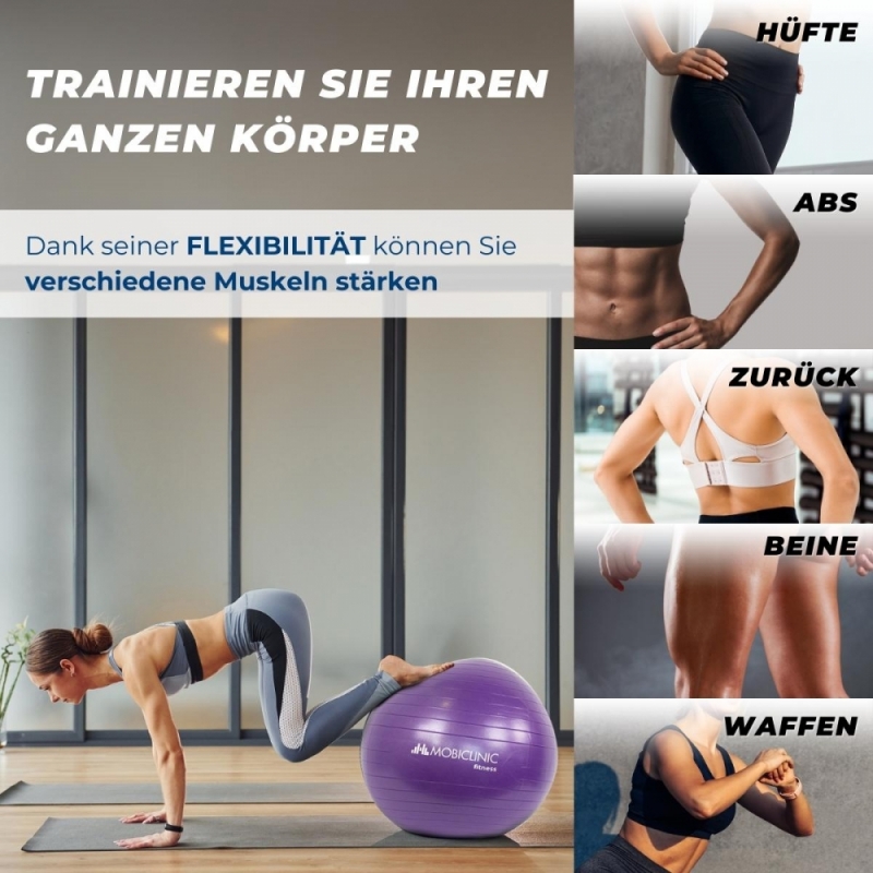 Dieser Gymnastikball ist ideal zur Stärkung der Bauchmuskulatur, zur Straffung Ihres Körpers, zum Abnehmen, zur Erholung, zur Verbesserung des Gleichgewichts und sogar für Schwangerschaftsübungen. Ebenso ist es zu einem unverzichtbaren Bestandteil jedes Fitnessstudios sowie Fitness- und Yoga-Zentren geworden. Zusätzlich zur Indikation vor der Geburt für schwangere Frauen.