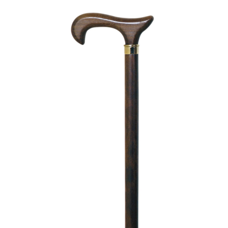 Diese braune Krücke ist aus Buche gefertigt und hat einen Derby-Griff.
