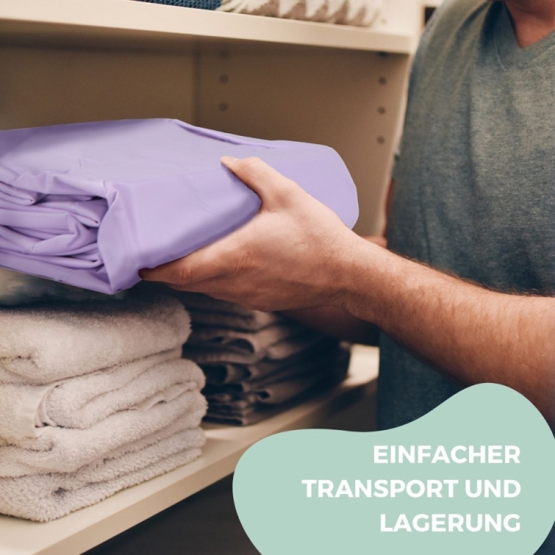 Falls die Matratze transportiert oder gelagert werden muss, ist dies dank seiner Abmessungen und seines geringen Gewichts problemlos möglich.