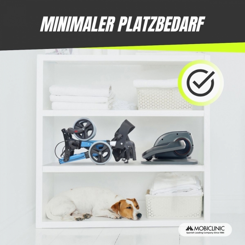 Dank seiner Abmessungen kann der elektrische Mini-Ellipsentrainer von Velet am Ende des Trainings praktisch an jedem Ort verstaut werden, ebenso wie er dank seines Griffs, an den Ort gebracht werden kann, an dem Sie trainieren möchten. Dieser Handstand kann auch für die Controller-Platzierung verwendet werden.