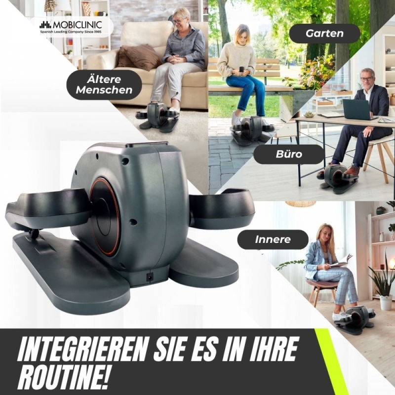 VOLLSTÄNDIGE ÜBUNG: Das Veleta Mini-Crosstrainer ist zu einer großartigen Option zum Abnehmen geworden, da es verschiedene Körperteile stärkt, hauptsächlich die Gesäßmuskulatur, die Beine und die Hüften. Ebenso kann diese Übung durch Armbewegungen ergänzt werden, um ein noch umfassenderes Training zu erzielen. Das mit diesem elektrischen Mini-Ellipsentrainer durchgeführte Training hat eine geringe Belastung für den Boden, was bei anderen Herz-Kreislauf-Workouts der Fall ist. Der Veleta Mini-Ellipsentrainer ist die beste Option, um die Herz-Kreislauf-Gesundheit, Koordination, Balance und Flexibilität zu verbessern sowie den Körper zu straffen und den täglichen Stress zu reduzieren. Dieser Mini-Crosstrainer ist für den Einsatz im Alltag konzipiert, da er sowohl im Büro als auch zu Hause sitzend genutzt werden kann. Denken Sie daran, dass es nur im Sitzen verwendet werden sollte.