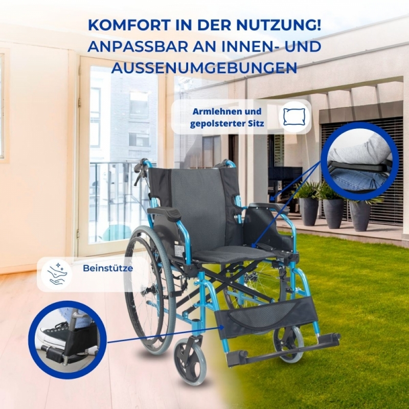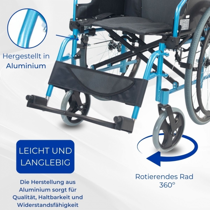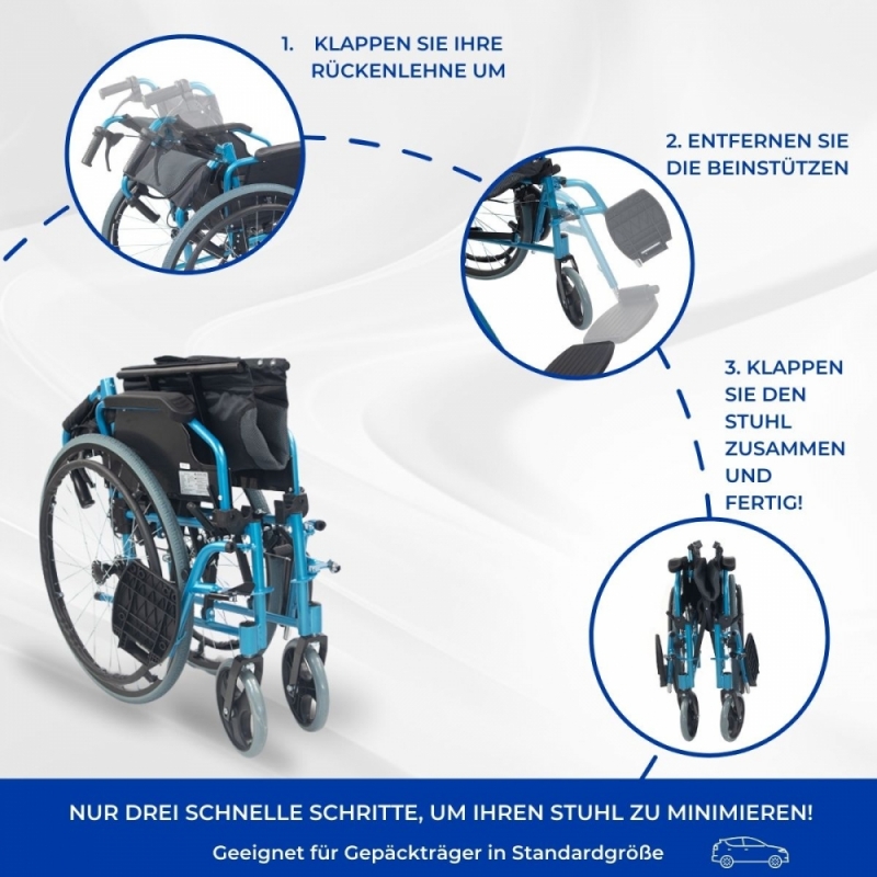 - Nettogewicht des Rollstuhls: 13,2 kg