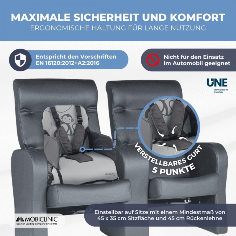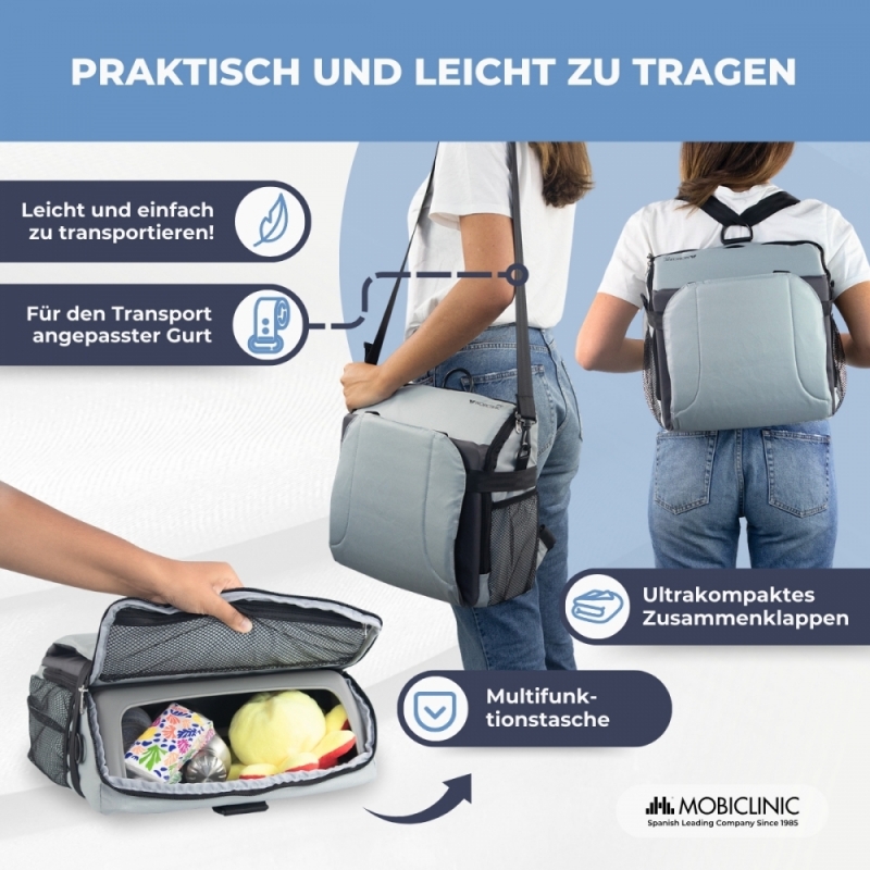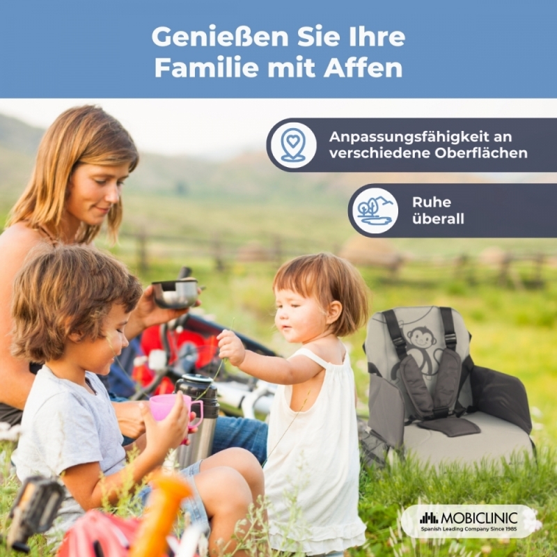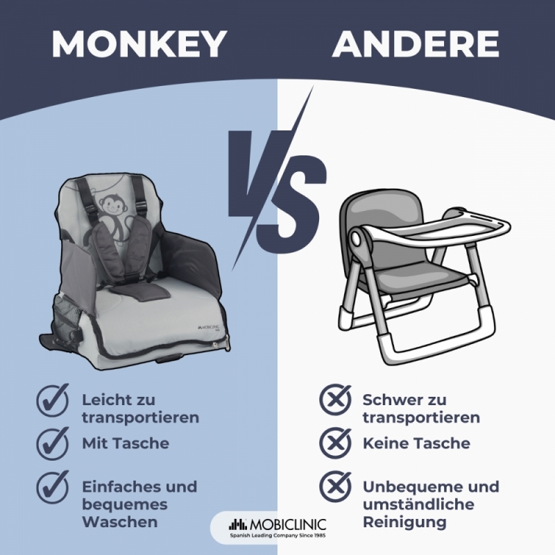 Reisehochstuhl mit Stauraum | Für Babys | Zusammenklappbar | Mit Tasche und Griff | Bis zu 15 kg | Grau | Monkey | Mobiclinic