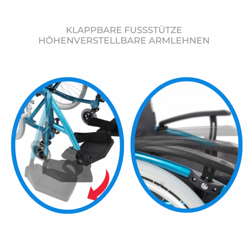 - Design: sportlich, hebt ihn von anderen herkömmlichen Rollstühlen ab
