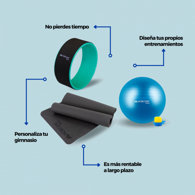 Zeitlich gesehen können Sie Ihre Freizeit zum Trainieren nutzen, denn Sie haben das Fitnessstudio zu Hause und müssen nicht warten, bis Sie an der Reihe sind, um die Matten, Bälle oder Yoga- und Pilates-Räder zu benutzen.