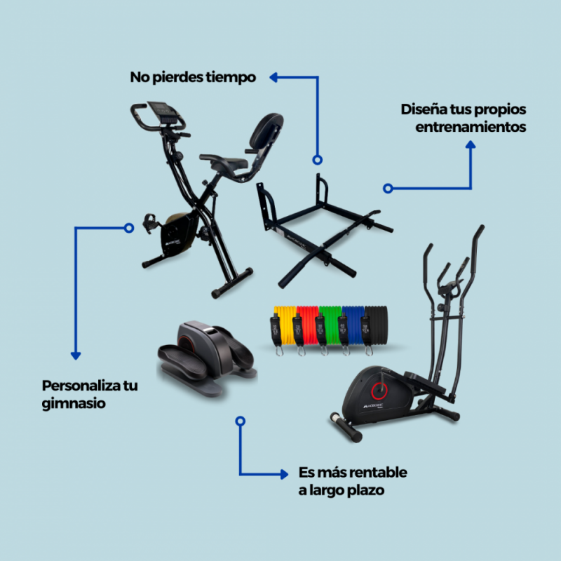 Unser Gym Fitness Pack ist das perfekte Set für Sportbegeisterte, die nicht viel Zeit haben, da es als Fitnessstudio für zu Hause konzipiert ist, aber auch im Büro aufgestellt werden kann. Alles, was Sie brauchen, ist ein kleiner freier Platz.