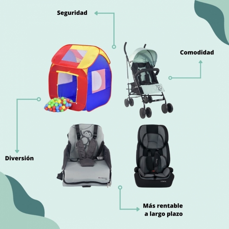 DIESES PACK ENTHÄLT: das Kinderspielzelt, den faltbaren Kinderwagen, den leichten Reisehochstuhl und den Isofix-Babyautositz