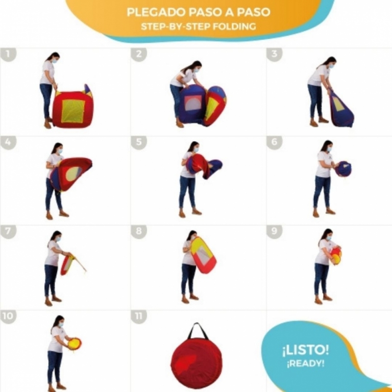 - ein Spielzelt für Kinder: mit mehrfarbigem Design und Hausform. Inklusive Bälle und Reisetasche. Die Bälle gibt es in vier verschiedenen Farben (rot, blau, grün und gelb) sie haben einen Durchmesser von ca. 5,5 cm.