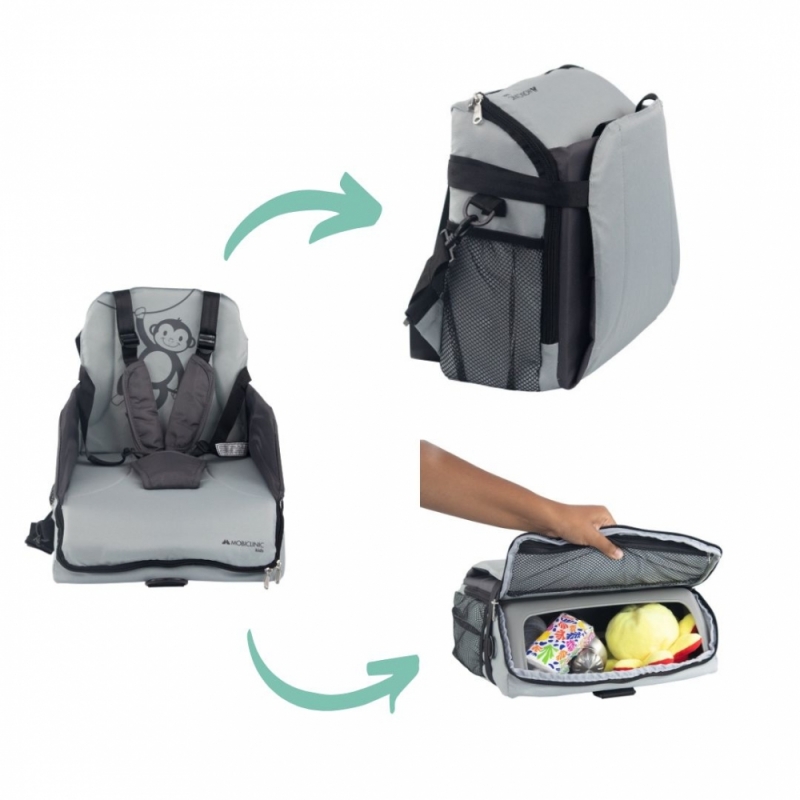 - Reisehochstuhl: Er ist tragbar und faltbar. Er verfügt über ein Fach zur Aufbewahrung von Flaschen, Windeln usw.
