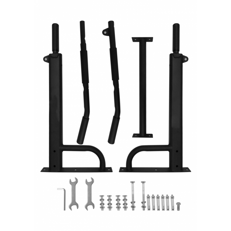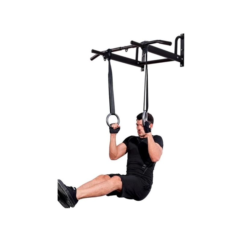 - Die Klimmzugstange ist so konzipiert, dass sie an der Wand verankert werden kann, was für große Stabilität sorgt und eine maximale Belastung von 150 kg trägt. Zu diesem Zweck ist ein Ankersatz enthalten, der die Installation der Stange erleichtert. Seine Struktur ist so konzipiert, dass ein intensives und komfortables Training möglich ist, indem verschiedene Griffe wie Pronation und Supination der Hände ausgeführt und der Abstand zwischen den Händen im Griff variiert werden können.