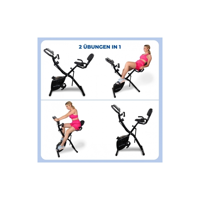 ERGONOMISCHES UND EINSTELLBARES DESIGN: Das Heimtrainer verfügt über ein ergonomisches Design, das sich in seinem gepolsterten und verstellbaren Sitz und seiner Rückenlehne widerspiegelt. Der Sitz lässt sich in zwei Positionen von 76 bis 89 cm verstellen und hilft dem Benutzer, die beste Position für das Training zu finden. Durch die verstellbare, scherenförmige Bodenöffnung verfügt es über 3 Ausbaumöglichkeiten: als stehender, liegender oder zusammengeklappter Heimtrainer .