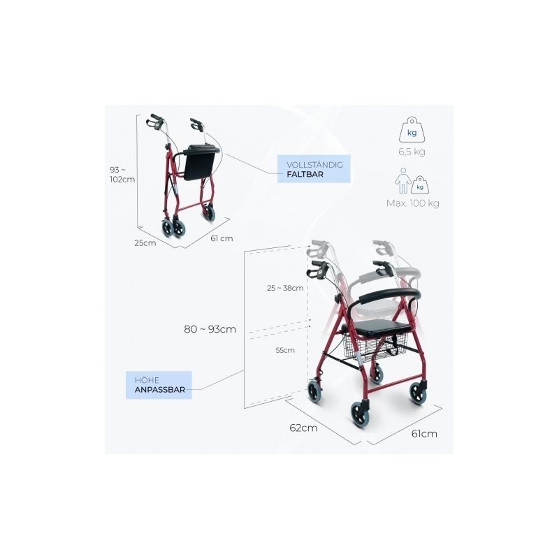 - Der Gehwagen für ältere Menschen Alhambra verfügt über ein innovatives und leichtes Design, das hervorragende Mobilität und Stabilität beim Gehen bietet. Er wird ein treuer Begleiter auf Ihren Reisen sein. Die Verbesserung der Mobilität einer Person mit Mobilitätsproblemen erhöht ihr Selbstwertgefühl und ihre Lebensqualität.