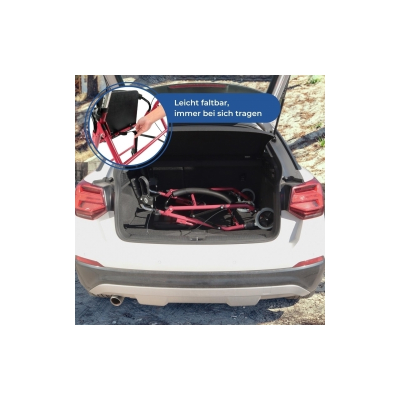 FALTBAR: Dieses technische Hilfsmittel ist faltbar, so dass Sie den Rollator für Erwachsene problemlos im Kofferraum Ihres Autos verstauen oder sogar platzsparend verstauen können.