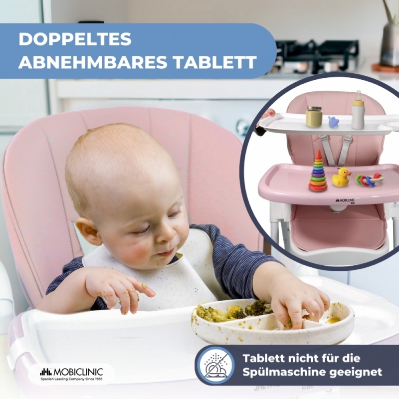 MULTIFUNKTIONALITÄT: Die Möglichkeit, das Tablett herauszuziehen, erleichtert die längere Verwendung als Sitz , wenn das Kind älter ist, sofern es dem maximal unterstützten Gewicht entspricht. Dadurch kann das Kind spielen, malen, mit der Umgebung interagieren oder sogar lernen, mit dem Besteck umzugehen.