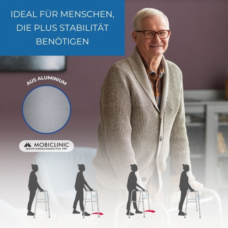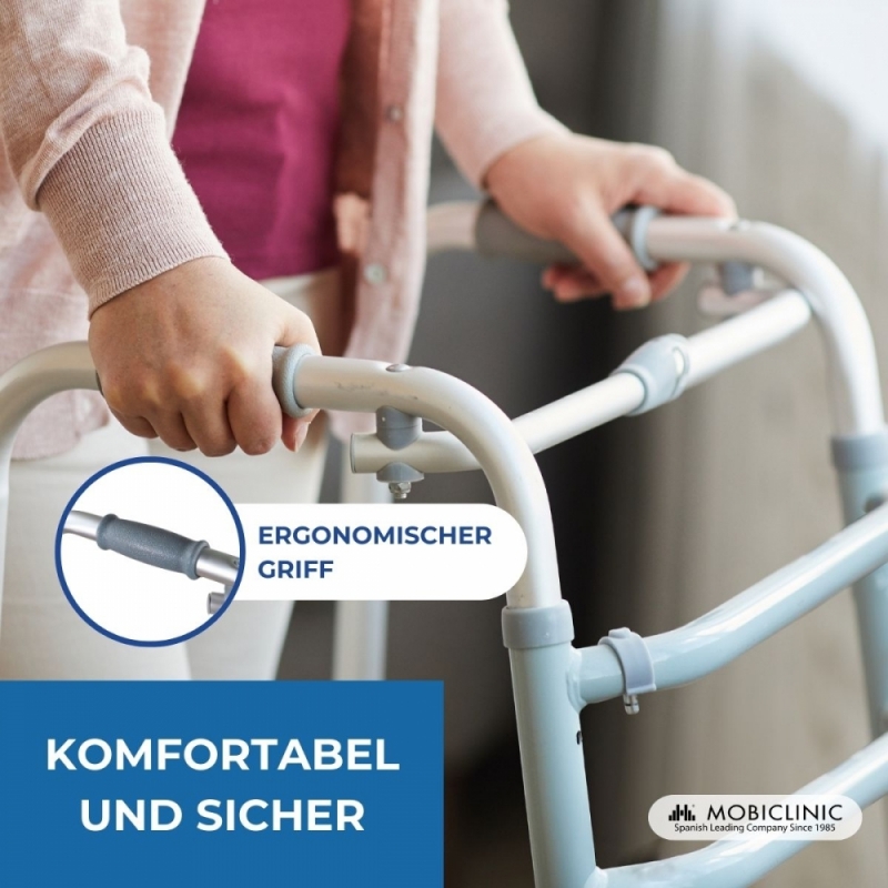 Die Moschee Erwachsenen-Walker ist die beste Walker ohne Räder für ältere Menschen, die Sie finden können, mit ihr können Menschen mit Mobilitätseinschränkung mit Festigkeit und Vertrauen gehen. Seine leichte Aluminiumstruktur ermöglicht eine agile und einfache Handhabung dieser orthopädischen Gehhilfe mit möglichst geringem Kraftaufwand. Die Bewegung wird bei Verwendung dieses Rollator ohne Räder viel natürlicher, da er den Benutzer schrittweise ohne Stöße und Rutschen begleitet.