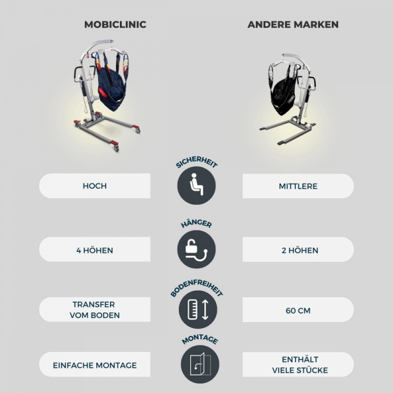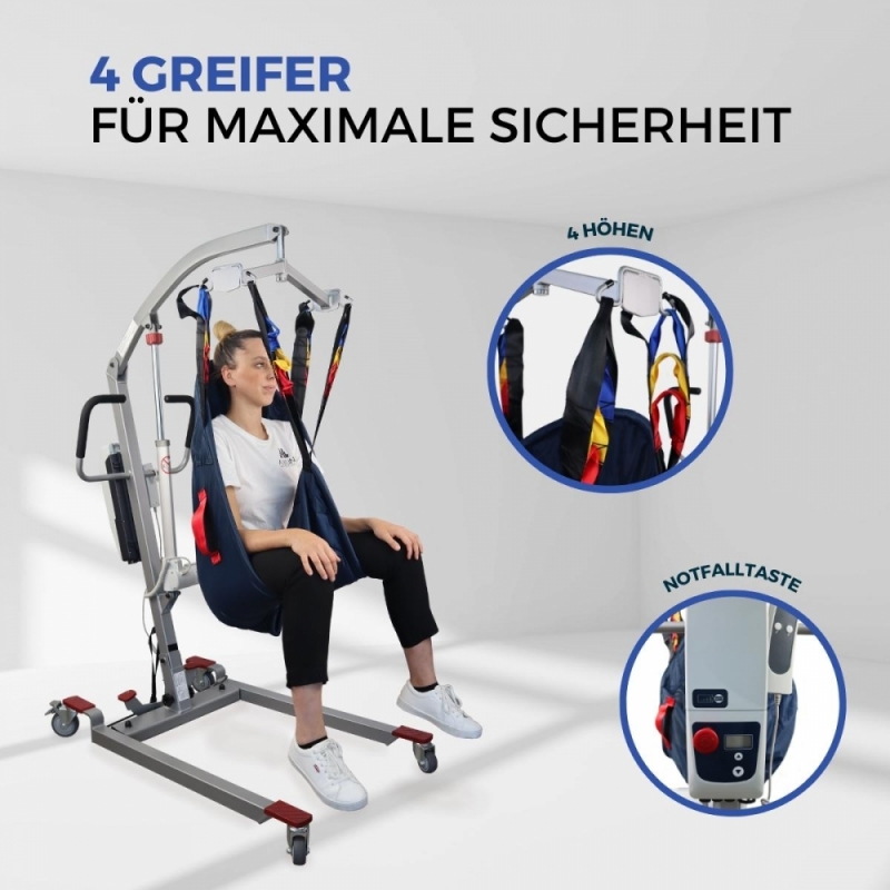 Elektrokran | Inklusive 4-Haken-Gurt | Struktur bereits montiert (KEINE Werkzeuge) | 180 kg | Fortuna | Mobiclinic