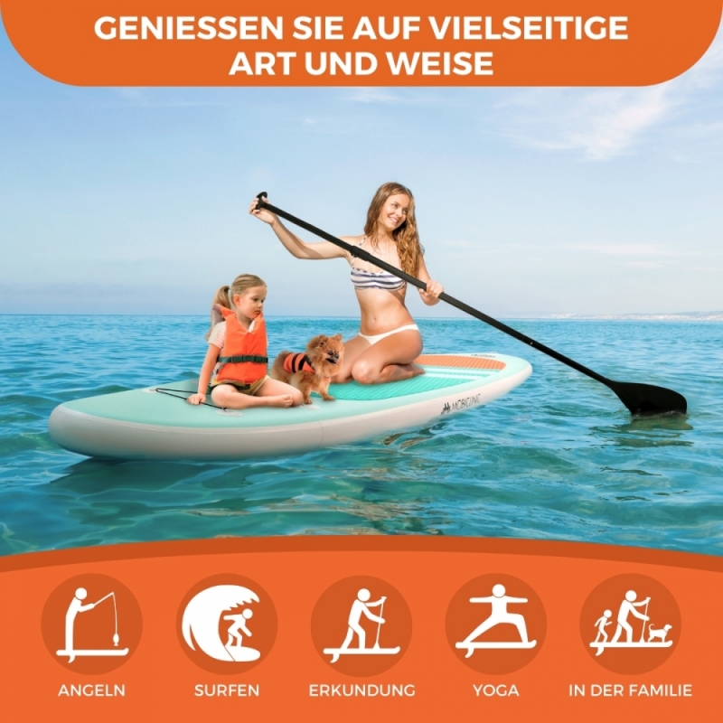 Vielseitigkeit ist der Schlüssel zum aufblasbaren Stand-Up-Paddle-Board Lilo. Seine außergewöhnliche Stabilität macht es perfekt für eine Vielzahl von Wasseraktivitäten , von Yoga und Küstentourismus bis hin zum Mitnehmen Ihrer Kinder oder Haustiere . Darüber hinaus ist es aufgrund seines robusten Designs die ideale Option für ruhiges Angeln oder das Surfen in weicheren Gewässern. Mit der mitgelieferten Unterwasser-Handyhülle können Sie unvergessliche Momente festhalten, beispielsweise das Fotografieren von Fischen beim Schnorcheln .
