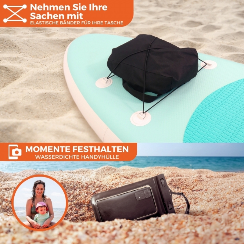 VIELSEITIGES ERLEBNIS AUF DEM WASSER : Dank seiner außergewöhnlichen Stabilität eignet sich das Stand-Up-Paddel Lilo perfekt für eine Vielzahl von Wasseraktivitäten, von Yoga über Küstentourismus bis hin zum Mitnehmen Ihrer Kinder oder Haustiere . Darüber hinaus eignet es sich aufgrund seines robusten Designs hervorragend zum ruhigen Angeln oder zum Surfen in weicheren Gewässern. Am Strand, an einem See , in einem Sumpf oder in einem Fluss können Sie Ihr Paddel nutzen und sich mit der Natur verbinden. Mit der mitgelieferten Unterwasser-Handyhülle können Sie unvergessliche Momente festhalten, beispielsweise das Fotografieren von Fischen beim Schnorcheln.