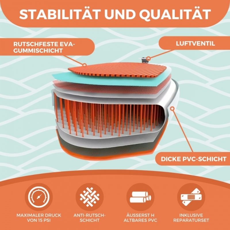 KOMPLETTES KIT: Unser exklusives Kit bietet Ihnen alles, was Sie brauchen, um in das aufregende Erlebnis des aufblasbaren Paddelsurfens einzutauchen. Vom Board bis zum unverzichtbaren Zubehör wie der Pumpe mit Manometer und dem verstellbaren Paddel haben wir alles zusammengestellt, was Sie brauchen, um sofort in Ihr Wasserabenteuer zu starten. Enthält auch ein Reparaturset .