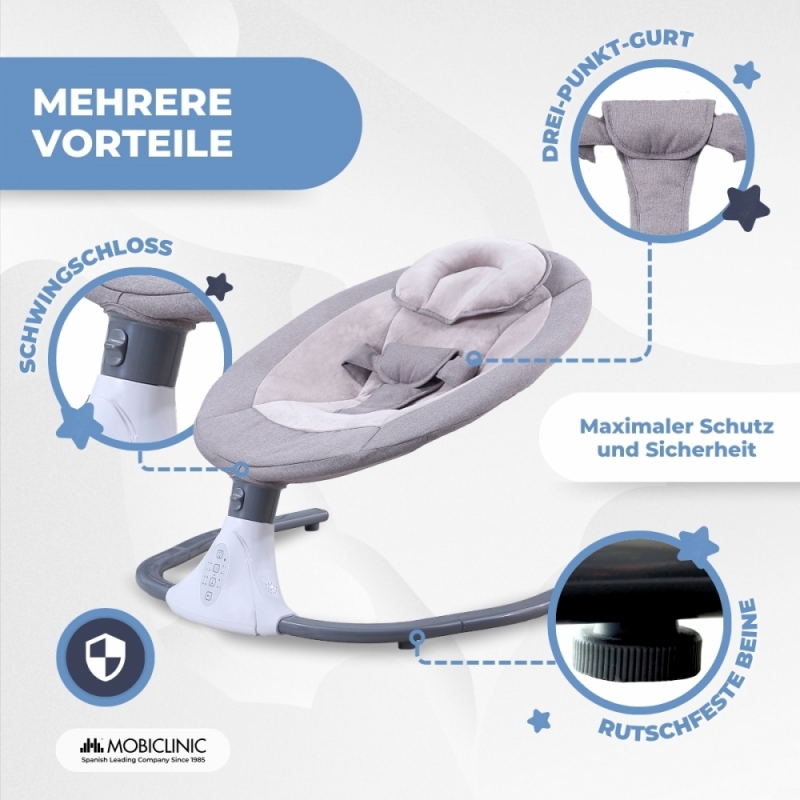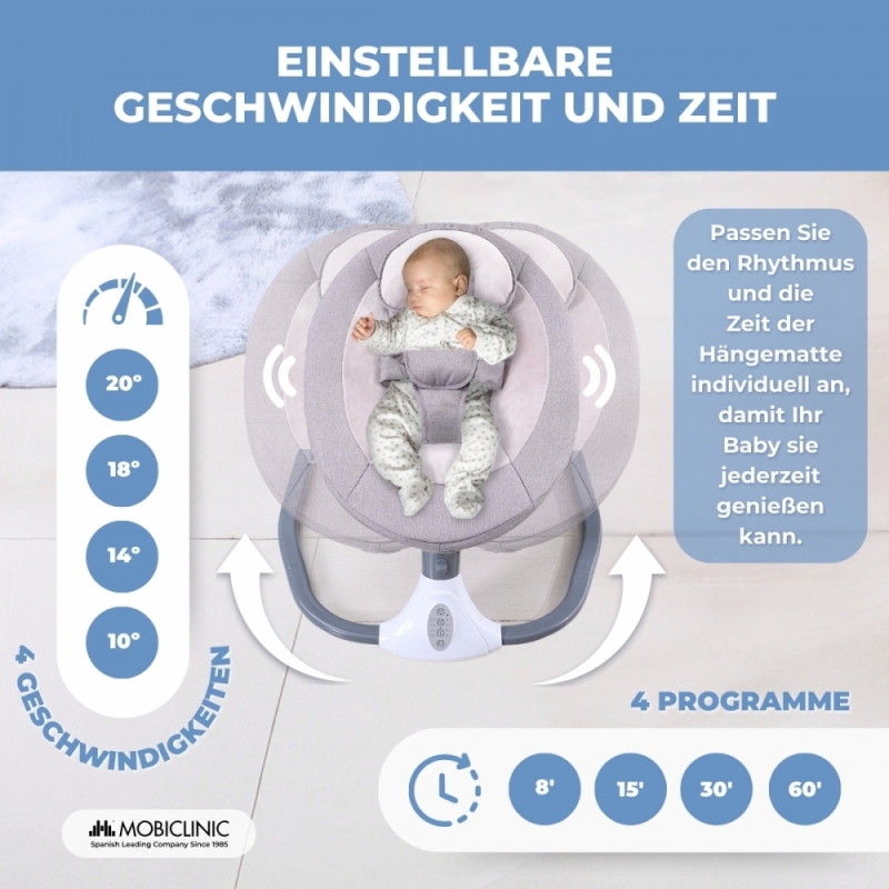 EINSTELLBARE SCHWINGFUNKTION: Bietet mehrere Geschwindigkeiten, um die Bewegung an die Vorlieben des Babys anzupassen. Ideal zur Beruhigung und Förderung des Schlafes.