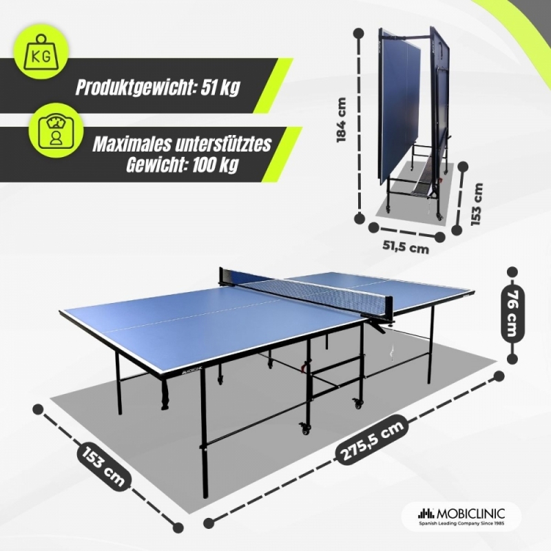 PROFESSIONELLE EIGENSCHAFTEN: Mit offiziellen Meisterschaftsmaßen ist es perfekt für den Heimgebrauch in Garagen, Kellern oder Spielzimmern geeignet. Inklusive Netz zum Anclipsen, Schlägern und Bällen für ein komplettes und praktisches Spiel.