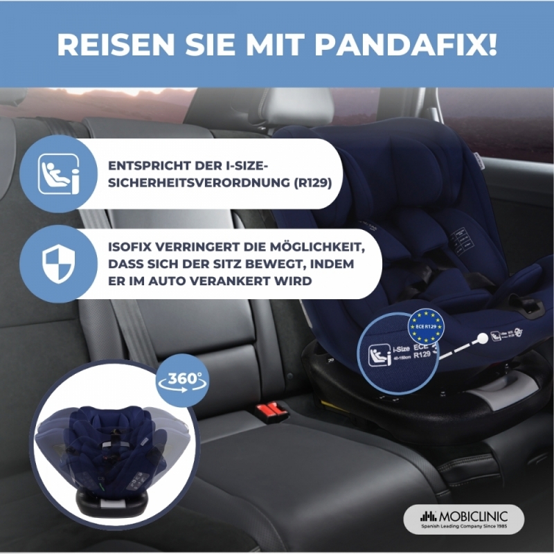 Der Kinderautositz Pandafix vereint Sicherheit, Komfort und Vielseitigkeit und wird so zum idealen Begleiter für jede Wachstumsphase eines Kindes. Dieser Stuhl wurde für den Schutz von 167 Tagen bis etwa 12 Jahren (40–150 cm/36 kg) entwickelt und zeichnet sich durch seine fortschrittliche Technologie und seine Fähigkeit aus, sich an die sich ändernden Bedürfnisse des Kindes und der Familie anzupassen.