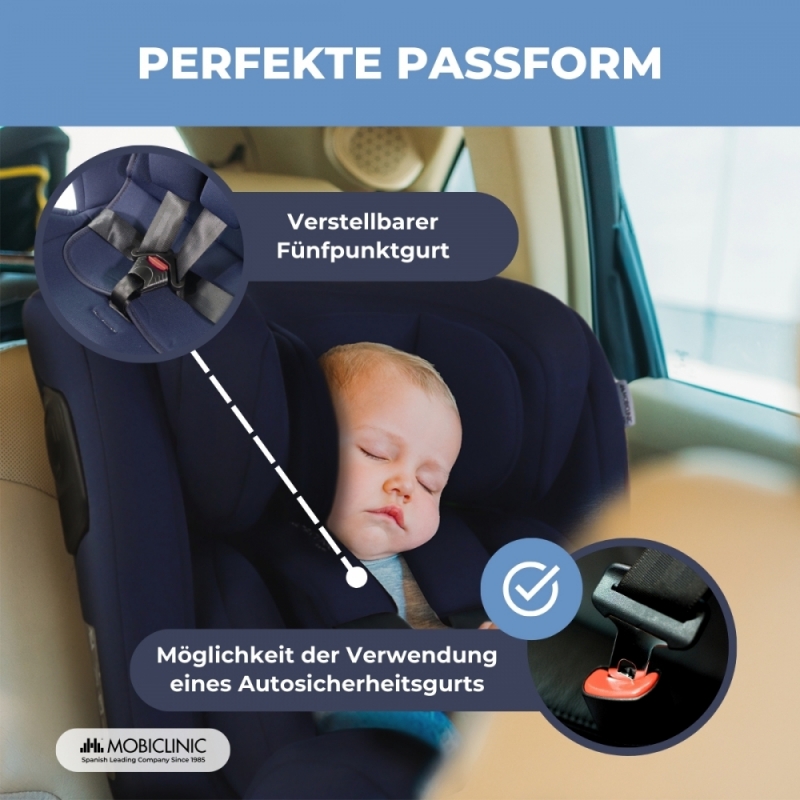 Ausgestattet mit einem Top-Tether-Sicherheitssystem garantiert der Stuhl eine zusätzliche Fixierung als dritter Ankerpunkt, der im Falle einer Kollision eine Vorwärtsbewegung verhindert und bei jeder Fahrt eine hervorragende Stabilität gewährleistet. Darüber hinaus verfügt es über einen integrierten und verstellbaren 5-Punkt-Gurt, der das Kind sicher festhält und die Kräfte gleichmäßig verteilt, um Risiken zu minimieren.