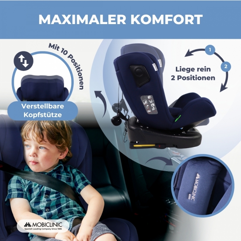 360°-DREHUNG: Die 360°-Drehung erleichtert den Zugang zum Kind aus jedem Winkel und macht das Einsetzen oder Herausnehmen aus dem Fahrzeug wesentlich komfortabler. Mit diesem System können Sie auch die Ausrichtung des Stuhls einfach ändern und ihn je nach Alter und Größe des Kindes nach vorne oder hinten anpassen. Der Autositz sorgt jederzeit für eine angemessene Platzierung und sorgt so für Komfort und Schutz während der Fahrt.
