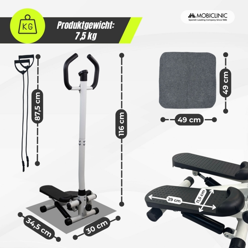 TRAINING ZU HAUSE: Dieser Stepper mit Armlehnen ermöglicht Ihnen ein umfassendes Ganzkörpertraining. Er kombiniert Cardio- und Muskelaufbau, stärkt Beine, Gesäß und Arme und verbessert die Ausdauer. Perfekt für alle, die zu Hause trainieren möchten.