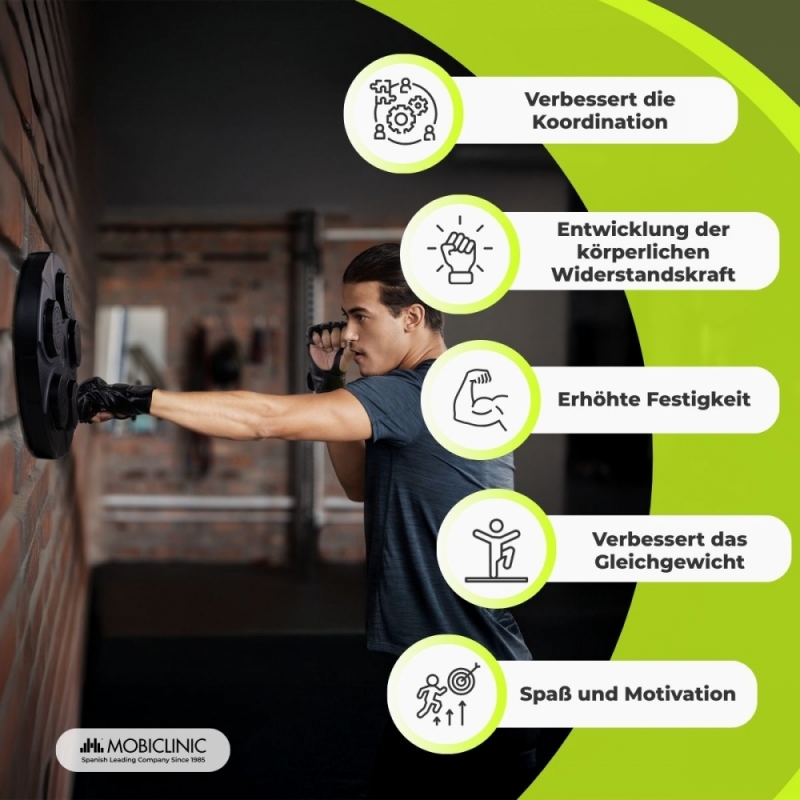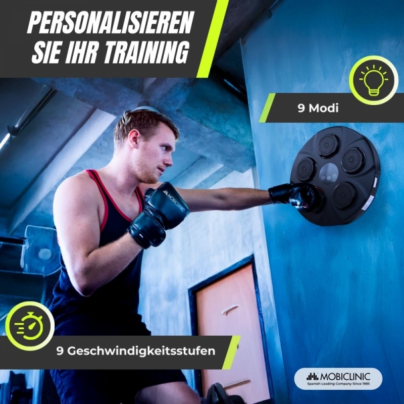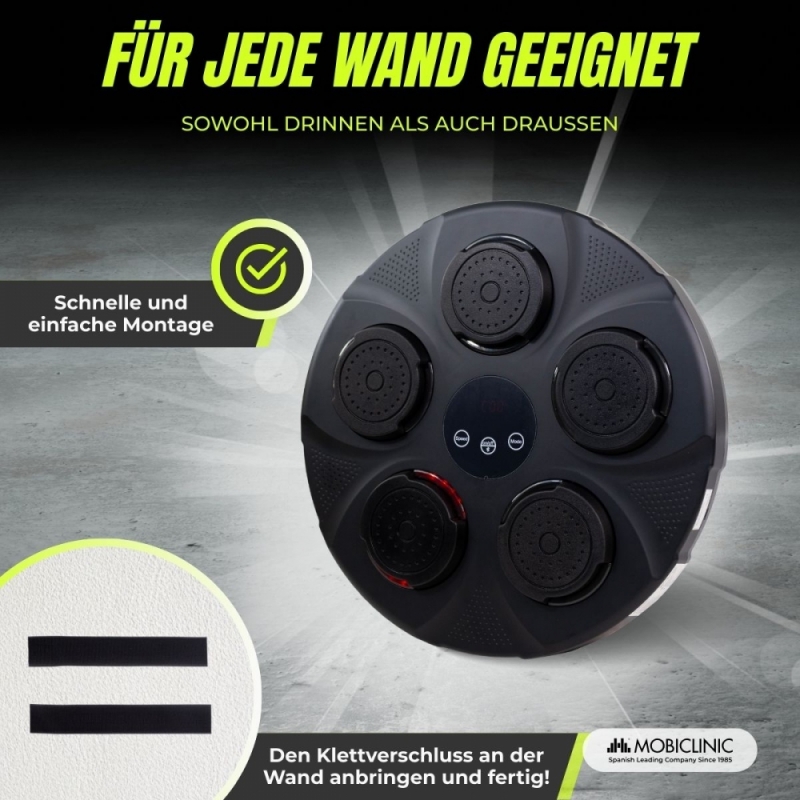 EINFACHE INSTALLATION: Die MusicKangu-Boxmaschine kann sowohl im Innen- als auch im Außenbereich verwendet werden, Sie müssen lediglich die Klebeaufkleber an die Wand kleben. Dank seines praktischen und einfachen Designs lässt es sich in wenigen Minuten zusammenbauen und bietet die Flexibilität, an jedem Ort ohne Komplikationen zu trainieren.