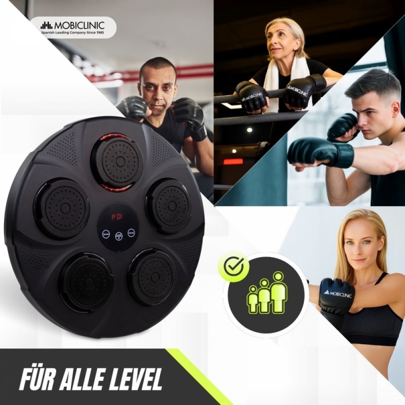 SPASSIGES UND PERSONALISIERTES TRAINING: Die Musikboxmaschine MusicKangu ist ideal für alle Niveaus, von Kindern bis zu Profis. Verbessert Koordination und Rhythmus durch die Synchronisierung von Schlägen mit Musik und bietet 9 Trainingsmodi und 9 Geschwindigkeiten zur Entwicklung von Beweglichkeit, Ausdauer und Kraft.