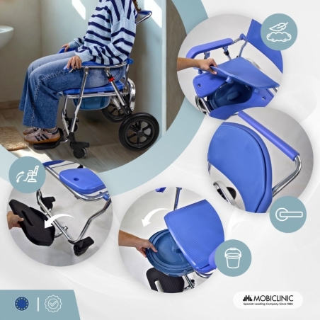 Dank seines faltbaren Designs lässt sich der Stuhl leicht verstauen und transportieren. Er benötigt wenig Platz und kann problemlos von Raum zu Raum getragen werden, wodurch er sich ideal für Pflegeheime, Privathaushalte und Krankenhäuser eignet. Seine Konstruktion ist primär darauf ausgelegt, alltägliche Aufgaben zu erleichtern, indem ruckartige Bewegungen und unnatürliche Körperhaltungen vermieden werden.