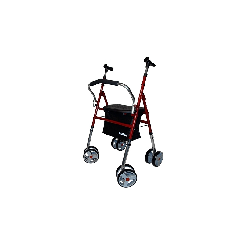 Die Gehhilfe für ältere Menschen ist aus Stahl, Aluminium und Thermoplastik gefertigt. Die ergonomischen, höhenverstellbaren Griffe, der Korb, der verstellbare Sitz und die schwenkbaren Räder machen ihn zu einem sehr gut ausgestatteten Gehwagen.
