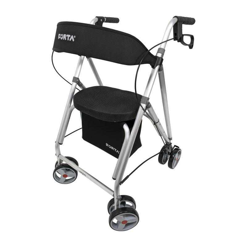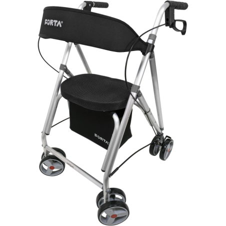 Gehhilfe mit Sitz | Aluminium | 4 Räder | Schwarz | Kanguro HD | FORTA