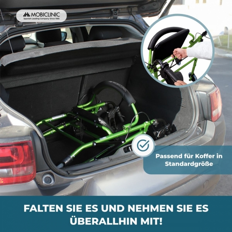 TÜREN UND KOFFERRAUM : Dieser Rollator hat eine Gesamtbreite von 60 cm, sodass er durch 62,5 cm breite Standardtüren passt. Da dieser zusammengeklappte Walker außerdem nur 24,5 cm misst, lässt er sich ganz einfach transportieren. Überprüfen Sie anhand der Maße Ihrer Türen und Ihres Fahrzeugs, ob es zu Ihnen passt.
