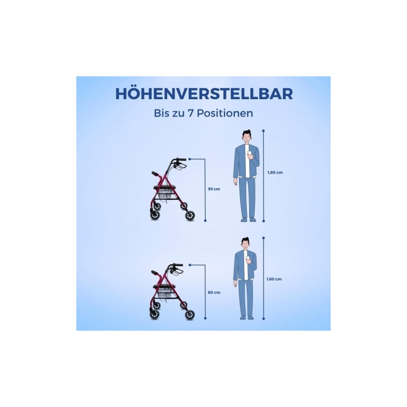EINSTELLBAR : Um maximale Anpassung und Komfort bei der Nutzung zu gewährleisten, wird dieser Gehwagen je nach Körpergröße des Benutzers angepasst.