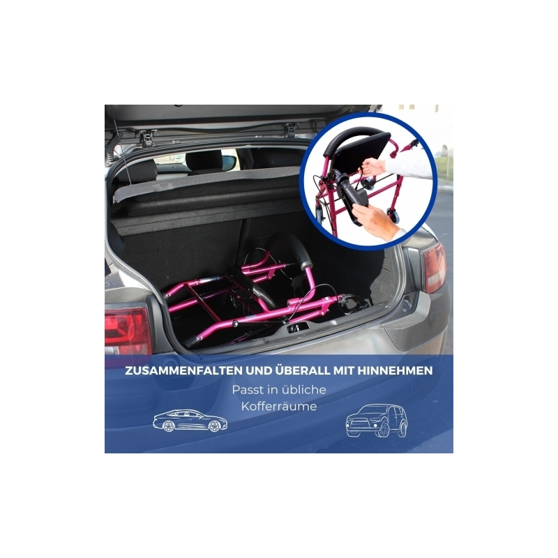 FALTBAR: Dieses technische Hilfsmittel ist faltbar, so dass Sie den Rollator für Erwachsene problemlos im Kofferraum Ihres Autos verstauen oder sogar platzsparend verstauen können.