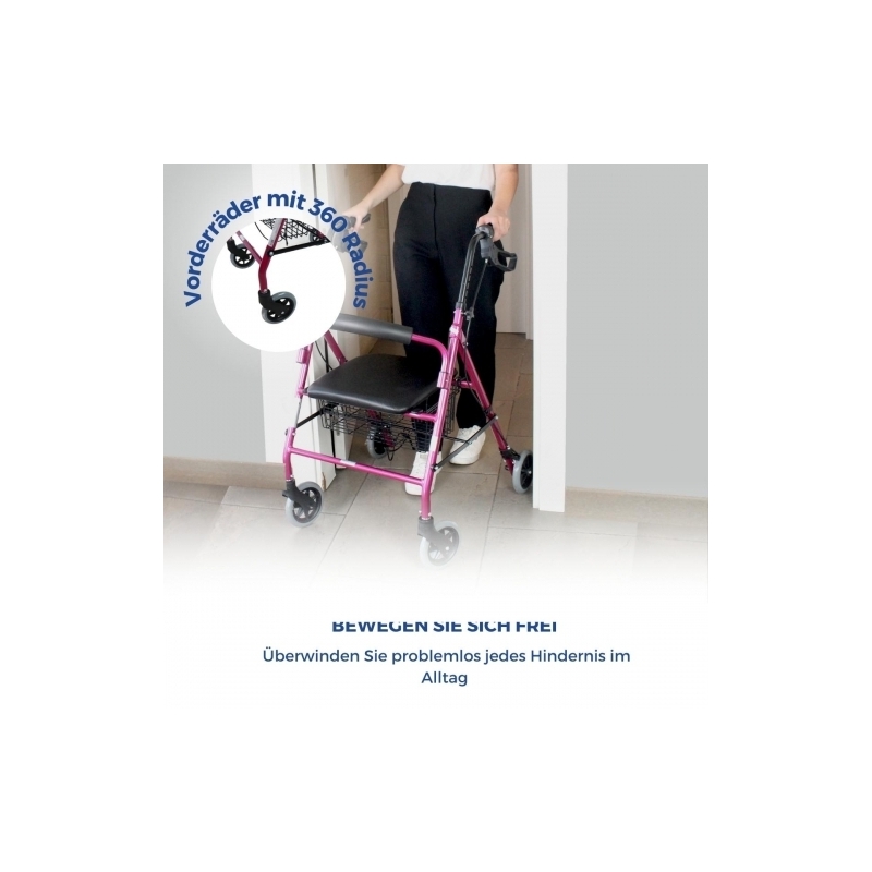 - Der Gehwagen für Erwachsene Escorial verfügt über ein innovatives und leichtes Design, das hervorragende Mobilität und Stabilität beim Gehen bietet. Es besteht aus Aluminium und bietet großen Widerstand und Beweglichkeit bei Bewegungen. Seine vier stabilen Räder sind darauf ausgelegt, kleine Hindernisse auf der Straße im Innen- und Außenbereich bequem und ohne Pannengefahr zu überwinden.