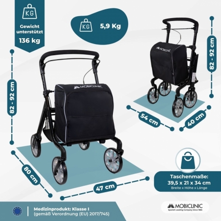 Der Einkaufswagen-Gehwagen Formen Mobiclinic ist eine 2-in-1-Lösung, die Mobilität, Sicherheit und Funktionalität vereint. Dank des Einhebel-Lenkers lässt er sich bequem mit einer Hand steuern und ist somit der perfekte Begleiter für alle, die im Alltag mehr Unabhängigkeit suchen.