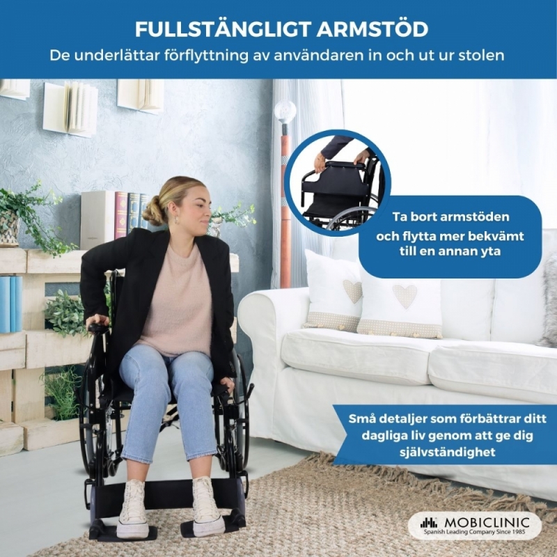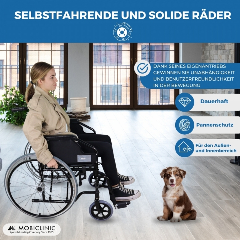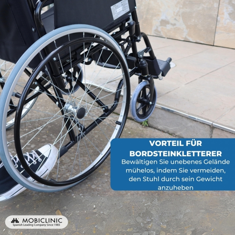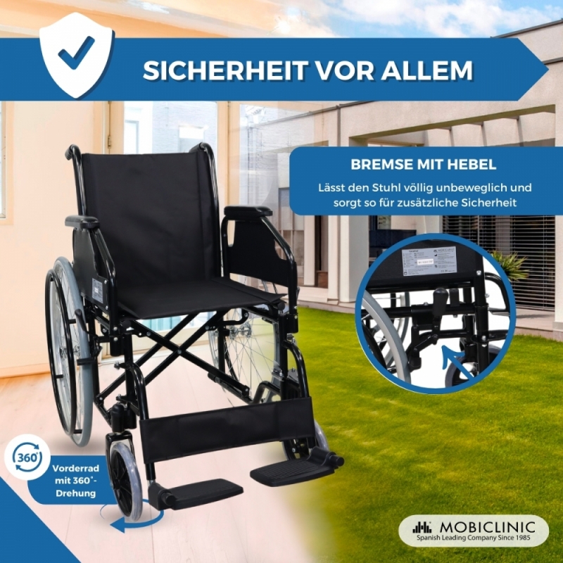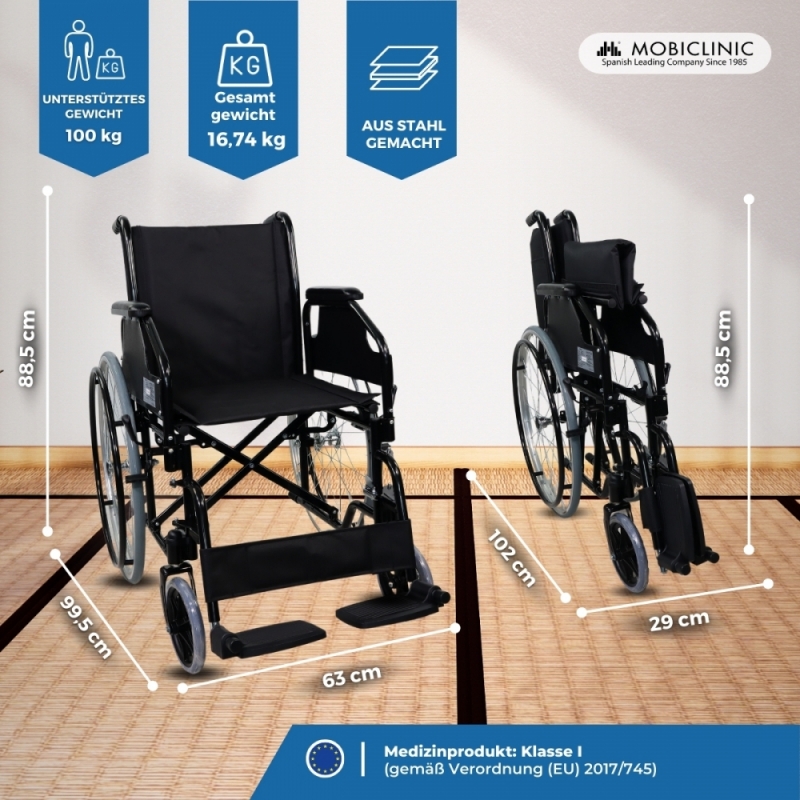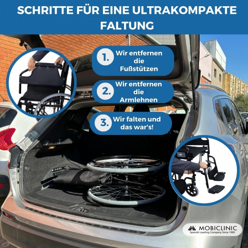Da es sich um einen faltbaren Rollstuhl handelt, lässt er sich außerdem leicht in jedem Fahrzeug transportieren.