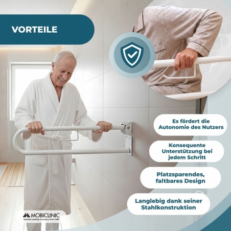 Sein Verankerungssystem passt sich jeder Wand und Oberfläche an und macht ihn zu einem unverzichtbaren orthopädischen Artikel und zu einem der notwendigsten Möbel für öffentliche Bäder, Krankenhäuser und Wohnungen, um die Sicherheit zu gewährleisten.
