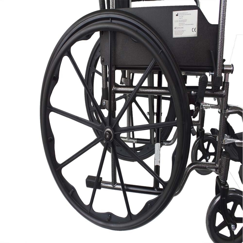 - Dank seiner großen Räder, die vom Patienten selbst angetrieben werden können, bietet der Reiserollstuhl der Person mehr Autonomie.