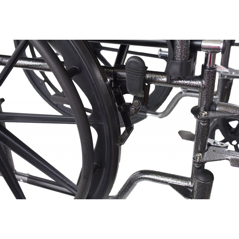 Außerdem kann man diesen Rollstuhl zusammenklappen, dank des Schnellverschlusses, mit dem sich die Hinterräder problemlos abnehmen lassen, ist er leicht zu transportieren und zu lagern.
