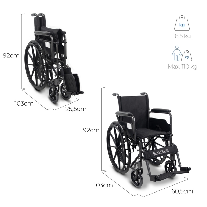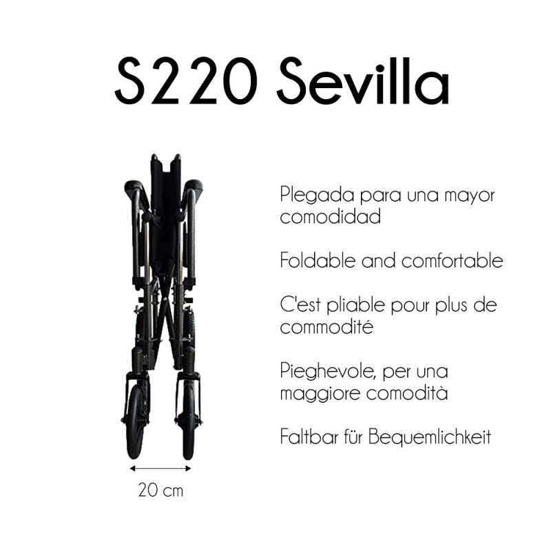 Rollstuhl faltbar | Große abnehmbare Hinterräder | Fußstütze und Armlehnen | S220 Sevilla | Premium | Mobiclinic